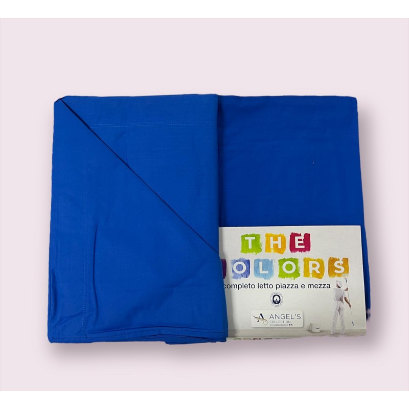 Completo Letto 1 Piazza E Mezza In Puro Cotone Angels Tinta Unita The Colors Bluette;
