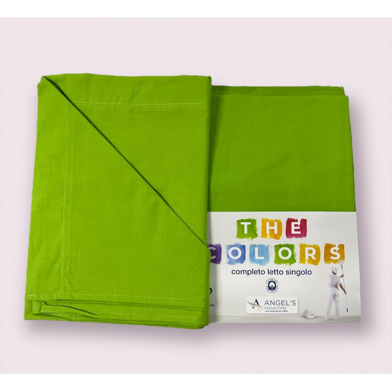Completo Letto 1 Piazza E Mezza In Puro Cotone Angels Tinta Unita The Colors Verde Mela;