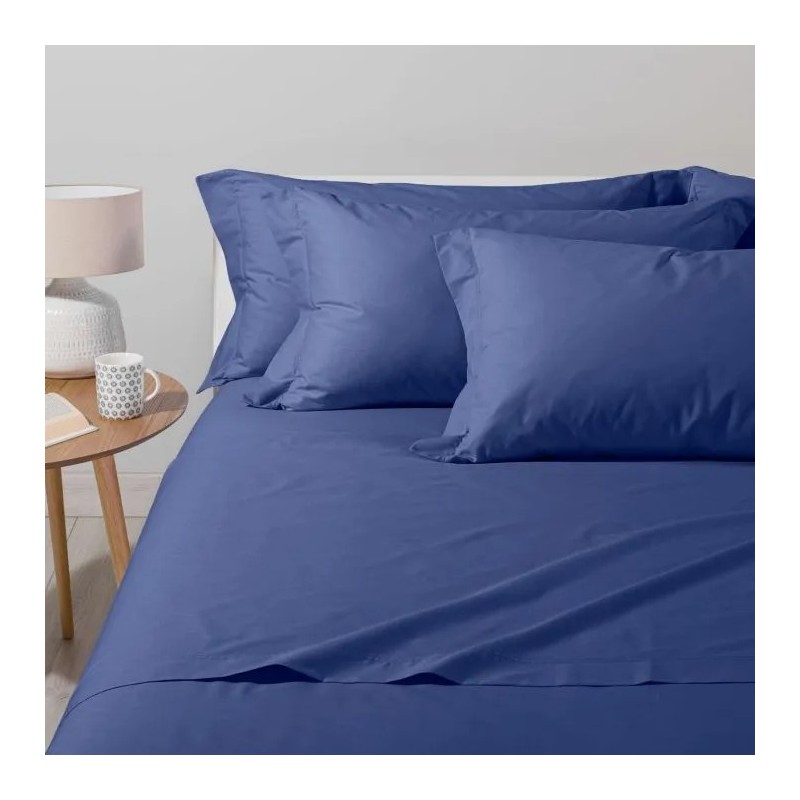 Completo Letto Matrimoniale In Puro Cotone Angels Tinta Unita The Colors Blu Oltremare