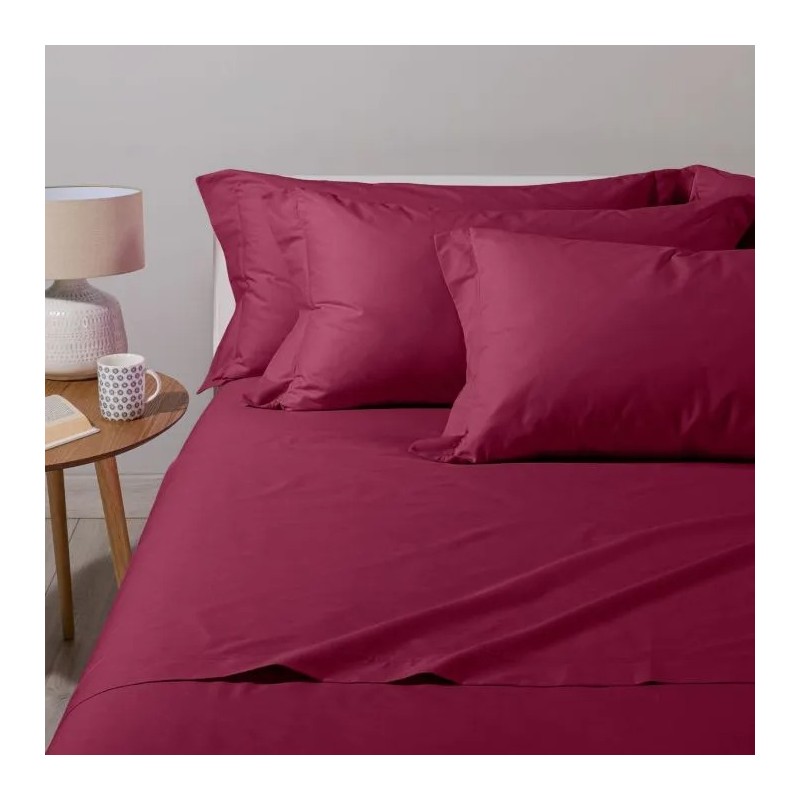 Completo Letto Matrimoniale In Puro Cotone Angels Tinta Unita The Colors Borgogna