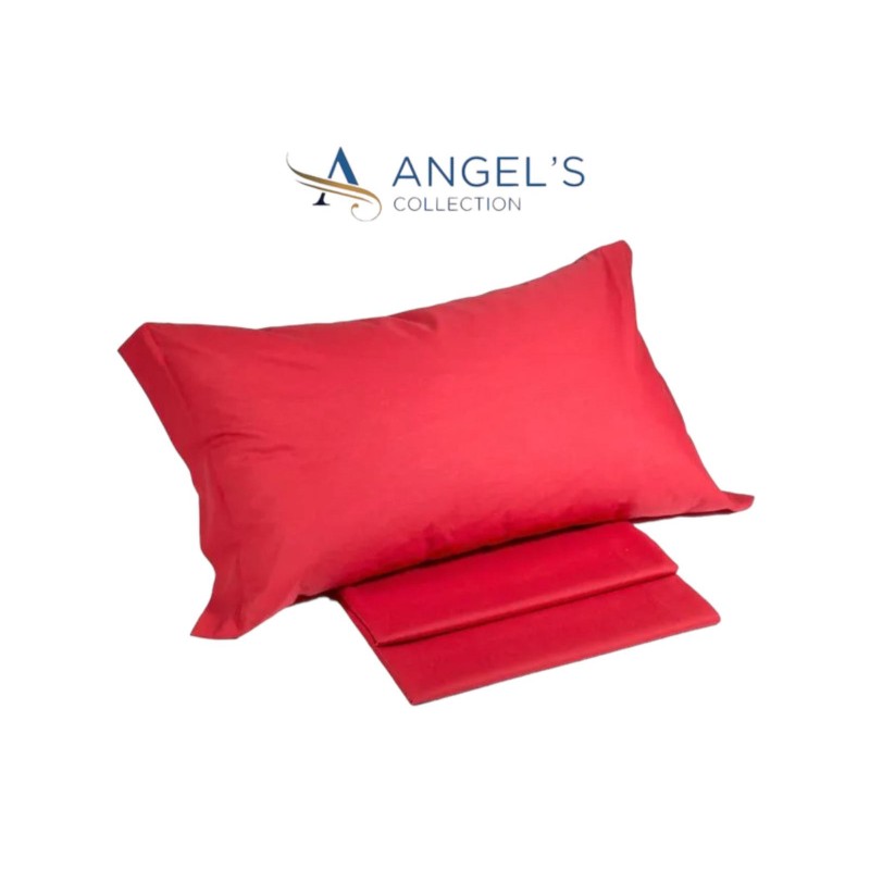 Completo Letto Matrimoniale In Puro Cotone Angels Tinta Unita The Colors Rosso;