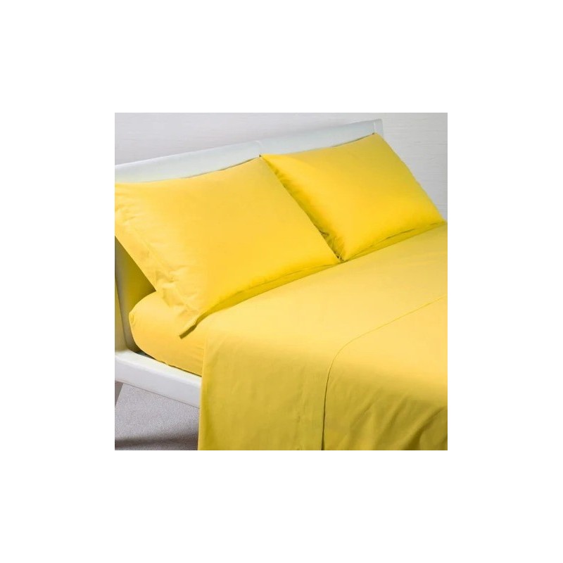 Completo Letto Matrimoniale In Puro Cotone Angels Tinta Unita The Colors Giallo Sole;