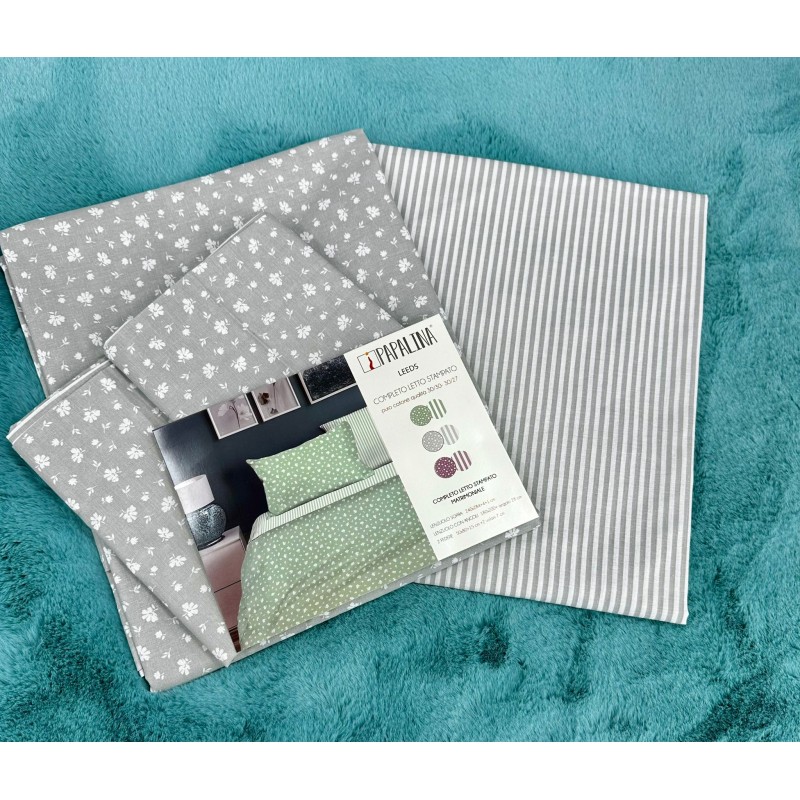 Completo Letto Matrimoniale Puro Cotone Papalina Fantasia Leeds