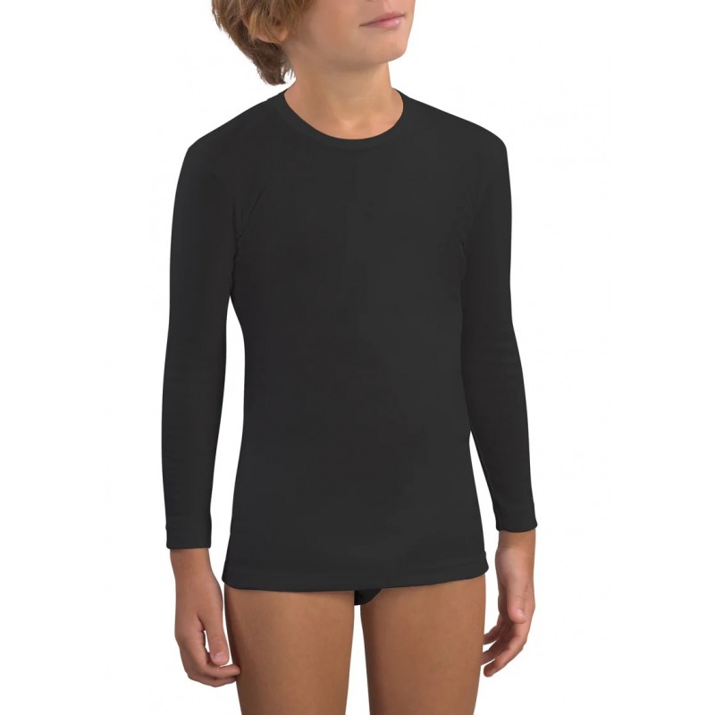 La Maglia Termica Bambino Manica Lunga Girocollo è il capo perfetto per affrontare l'inverno con il massimo del comfort. Grazie al tessuto tecnico in 91% Poliammide e 9% Elastan, questa maglia garantisce isolamento termico e traspirabilità, mantenendo il corpo sempre asciutto e al caldo.