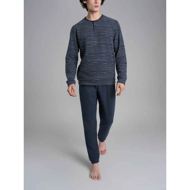 Pigiama a serafino in caldo cotton eco pile con maniche lunghe.