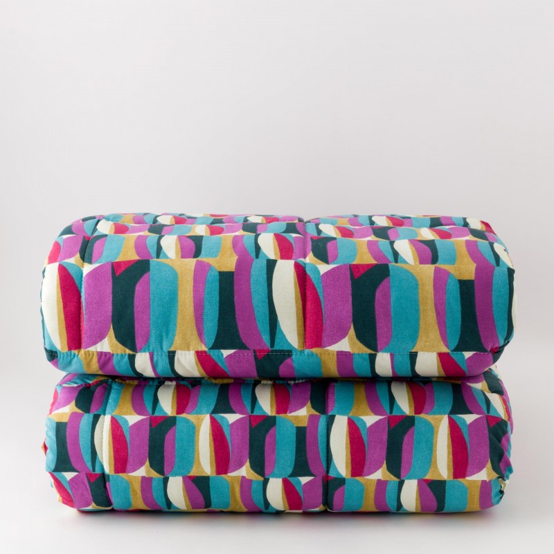 Geometrie dinamiche, colori vibranti, energia visiva: la trapunta Gin è un’esplosione di stile che dona carattere e vitalità alla camera da letto. Il suo disegno, ispirato alle forme astratte degli anni ’70, interpreta la modernità con un tocco retro sofisticato, perfetto per chi cerca una biancheria che arredi con personalità.